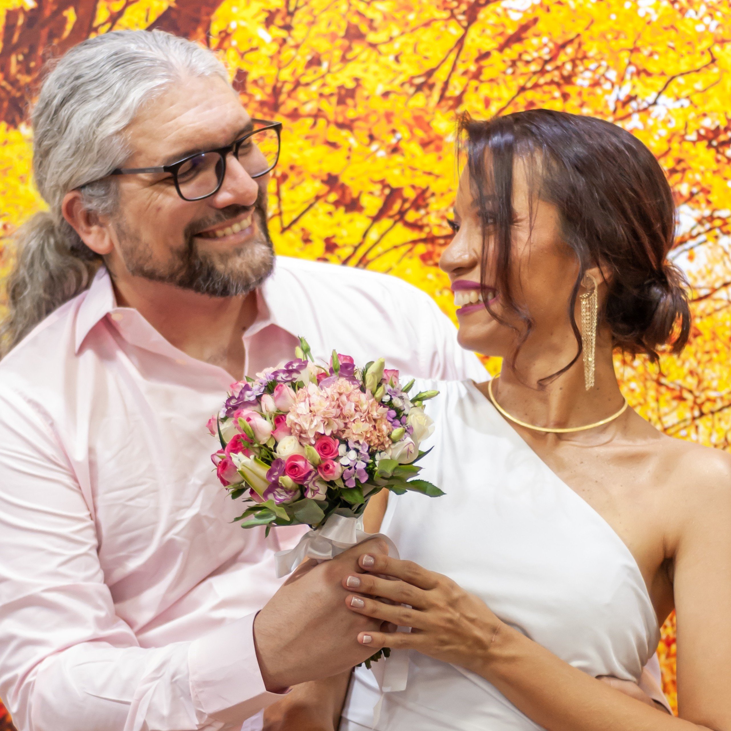 É uma emoção única e indescritível tê-los ao nosso lado e poder partilhar com vocês toda felicidade dessa nova etapa em nossas vidas: nosso casamento! Por isso, desejamos tê-los como testemunhas do nosso sonho e do nosso amor!